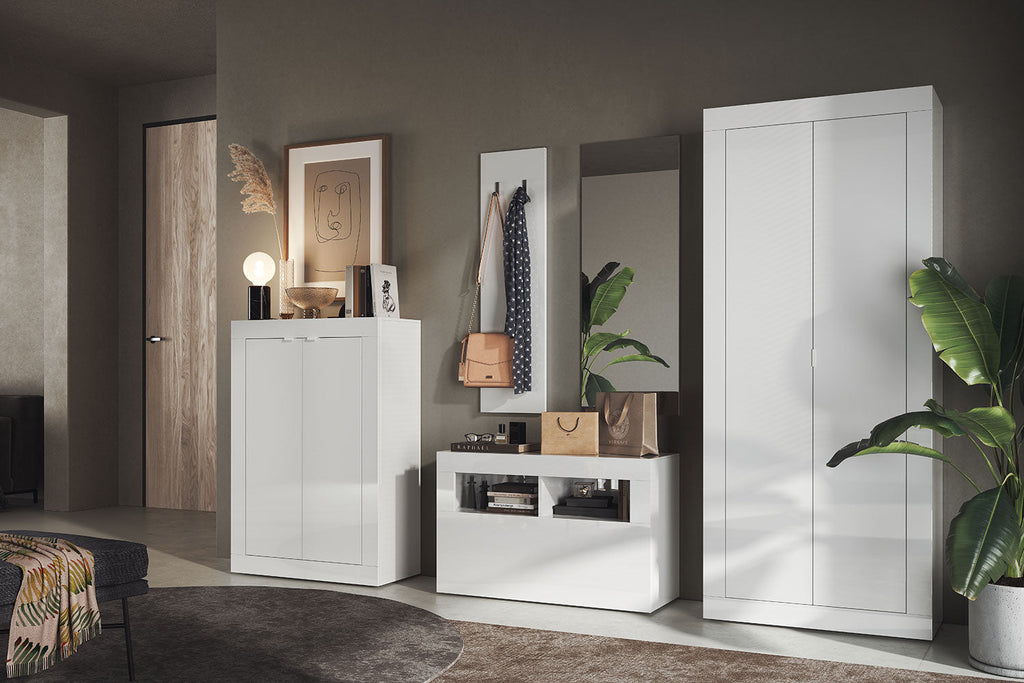 Set Ingresso Mobile 1 Anta a Ribalta Appendiabiti 91x36x165 cm e Specchio 50x110 cm Linea Basic Bianco Lucido