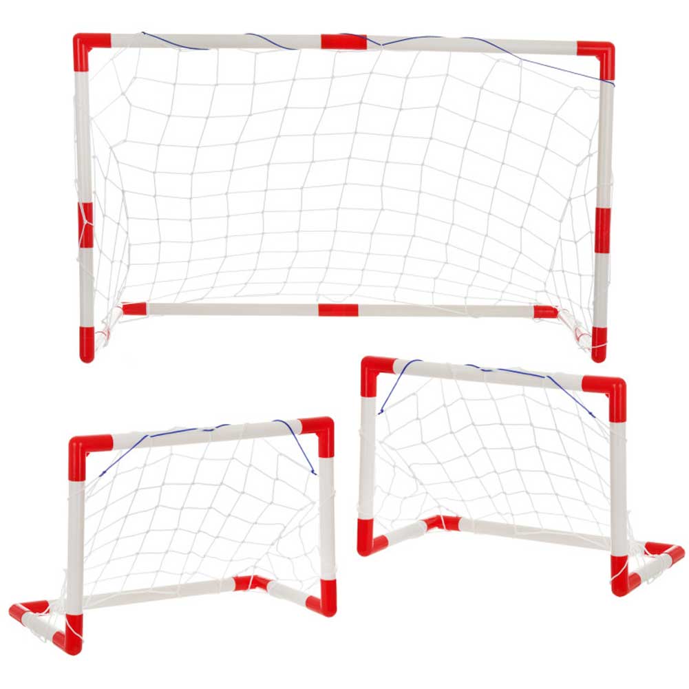 Il set contiene moduli prefabbricati che possono formare una porta da calcio grande (85 x 60 x 42 cm) o due porte da calcio più piccole (45,5 x 31,5 x 23 cm).