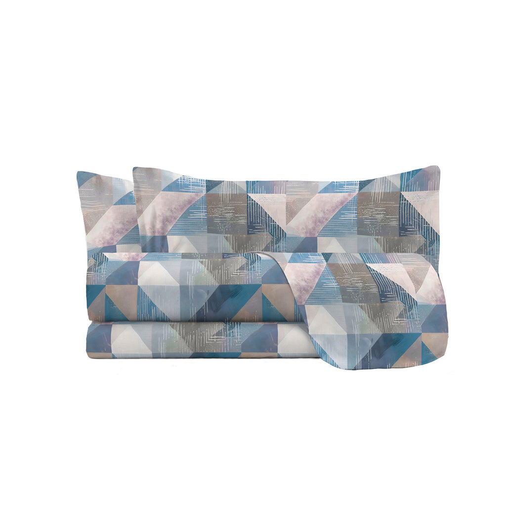 Set Lenzuola con Stampa Sopra Sotto e Federe Linea River Sepik Blue Varie Misure