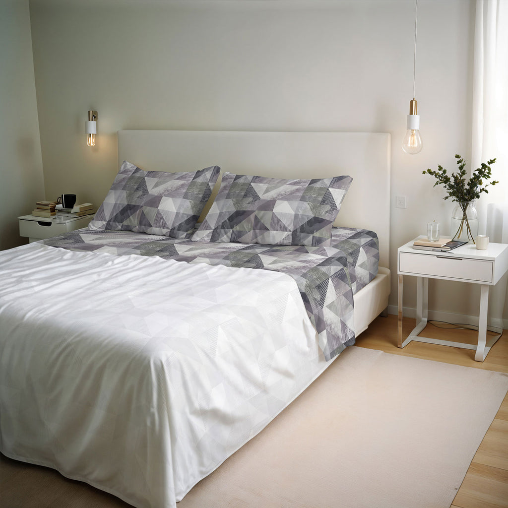 Set Lenzuola con Stampa Sopra Sotto e Federe Linea River Sepik Grey Varie Misure