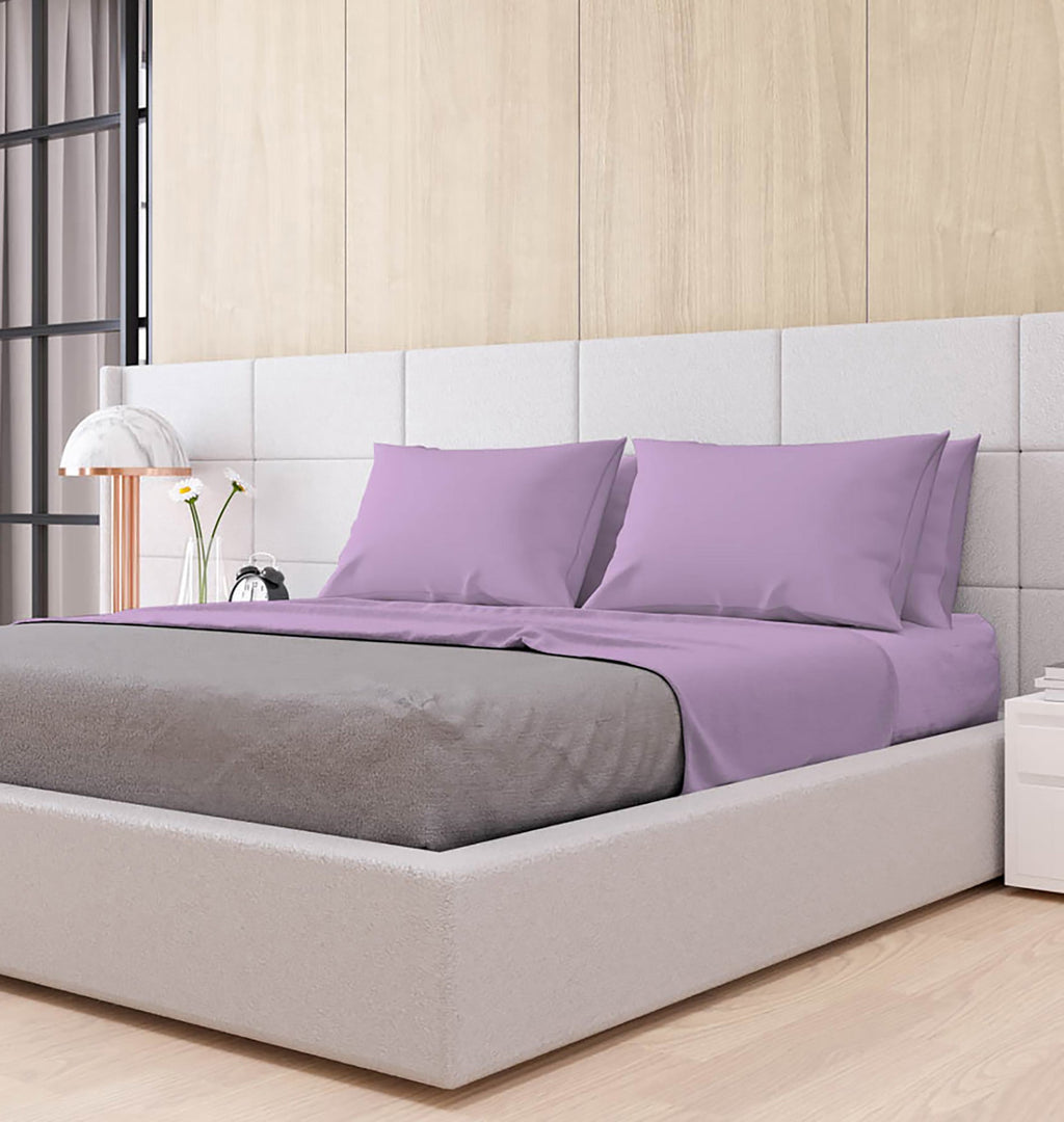 Set aus Doppellaken oben und unten und Kissenbezügen einfarbig lila