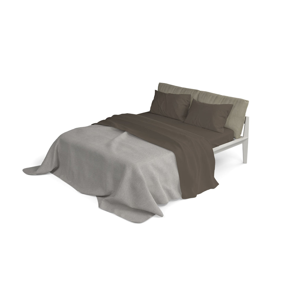 Einfarbiges Bettlaken-Set bestehend aus Oberlaken, Unterlaken und Kissenbezügen. Hergestellt aus feiner Baumwolle, mit besonderem Augenmerk auf die Oberflächen und ein "Finishing" -Verfahren, das den Farben eine besondere Brillanz und eine hohe Waschbeständigkeit verleiht.