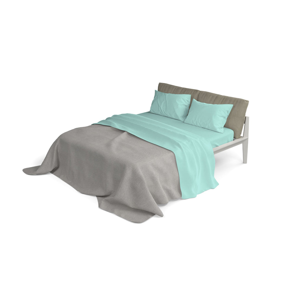 Einfarbiges Bettlaken-Set bestehend aus Oberlaken, Unterlaken und Kissenbezügen. Hergestellt aus feiner Baumwolle, mit besonderem Augenmerk auf die Oberflächen und ein "Finishing" -Verfahren, das den Farben eine besondere Brillanz und eine hohe Waschbeständigkeit verleiht.