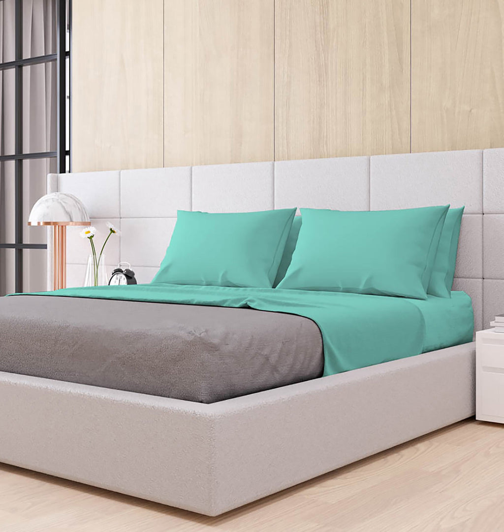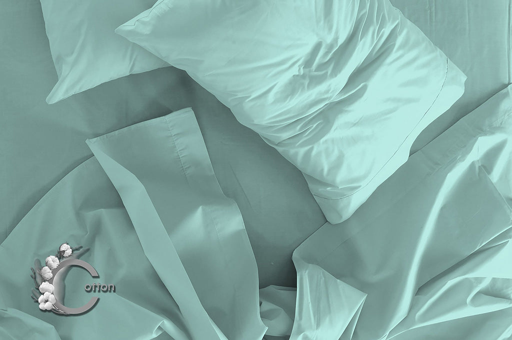 Set aus Doppellaken oben und unten und Kissenbezügen einfarbig aquagrün