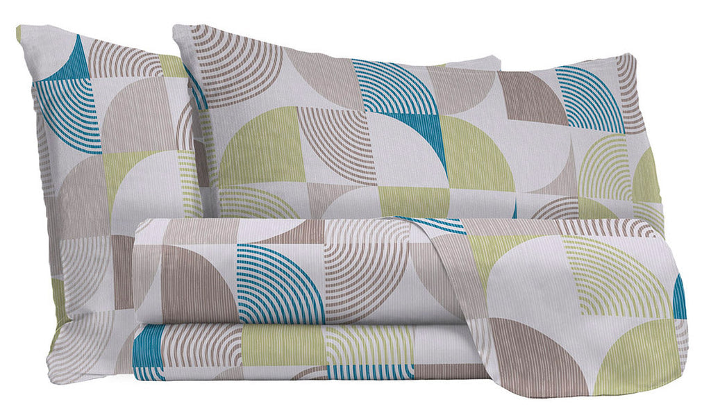 Il set è composto da lenzuolo sopra, lenzuolo sotto e federe. Studiato, assemblato e cucito interamente in Italia, realizzato in Cotone.