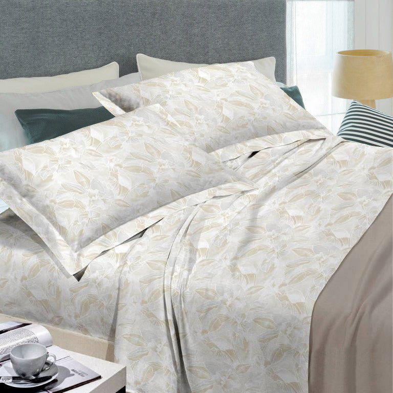 Set aus Baumwolllaken oben und unten und Kissenbezügen in Cober Ecru