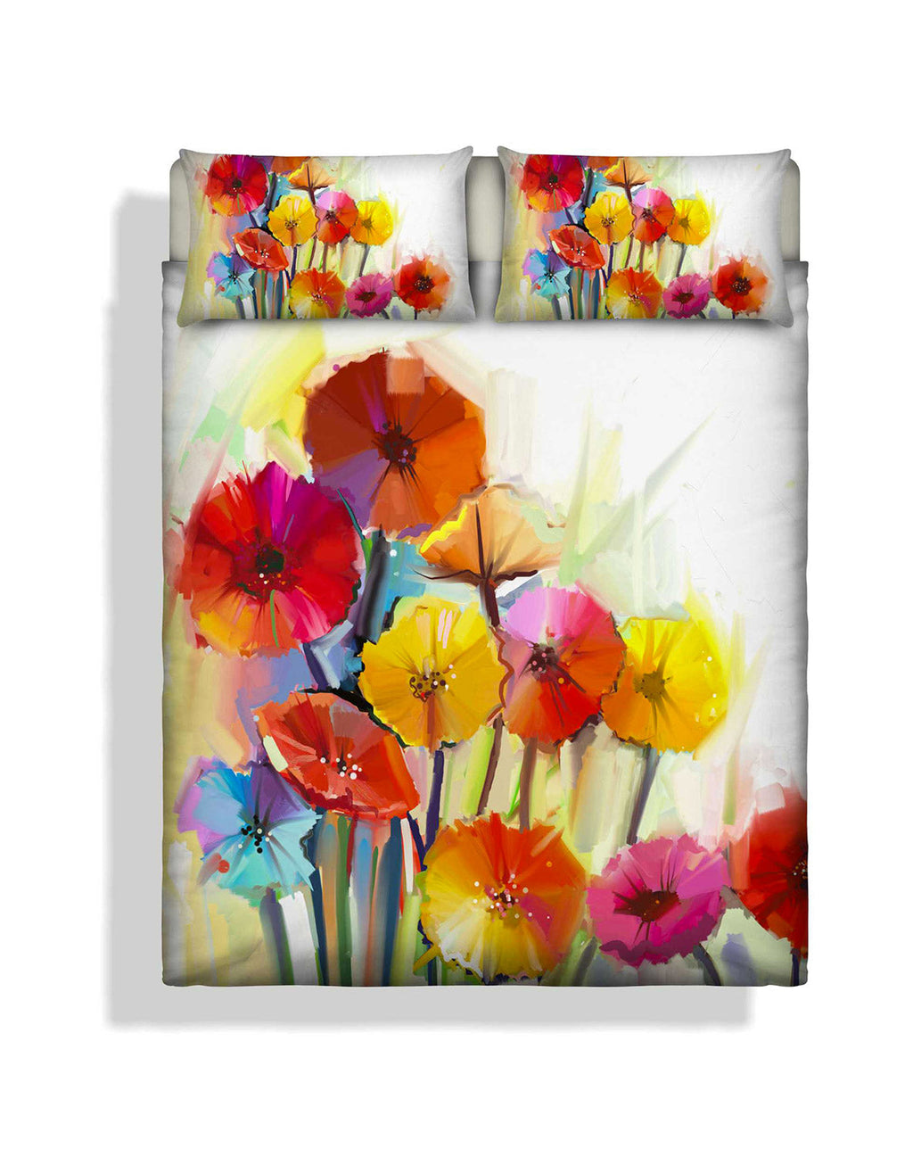 - Bettgarnitur mit flächendeckendem Digitaldruck auf Bettlaken und Kissenbezügen