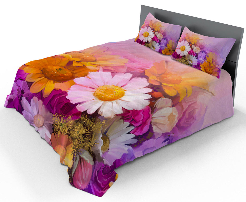 • Bettgarnitur mit flächendeckendem Digitaldruck auf Bettlaken und Kissenbezügen