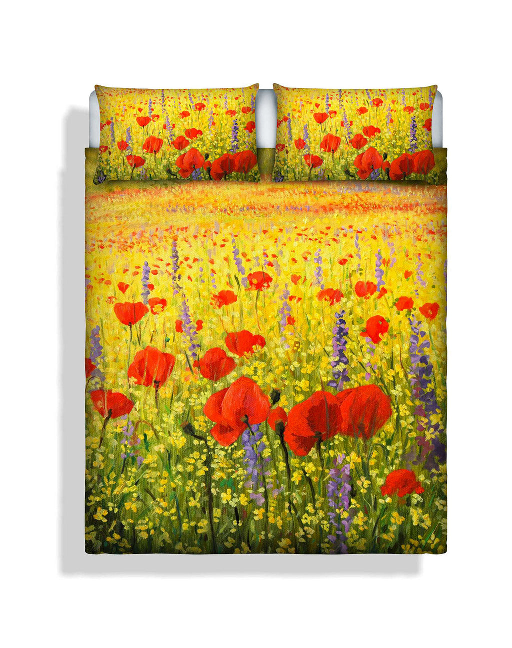 • Bettgarnitur mit flächendeckendem Digitaldruck auf Bettlaken und Kissenbezügen