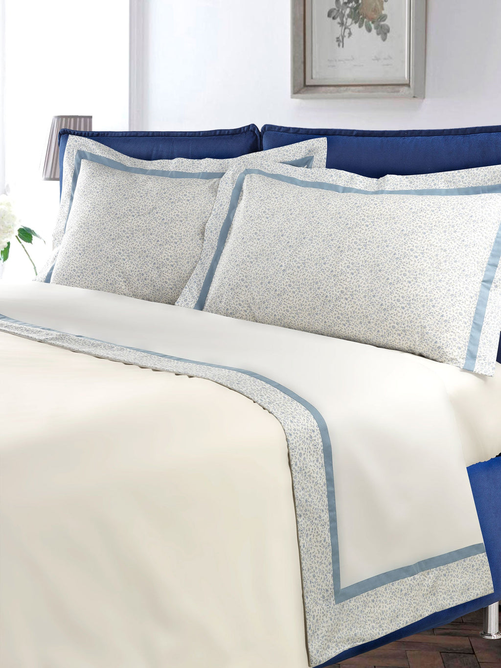 Set aus Doppellaken oben und unten und Kissenbezügen mit Garrini Emily Light Blue Print