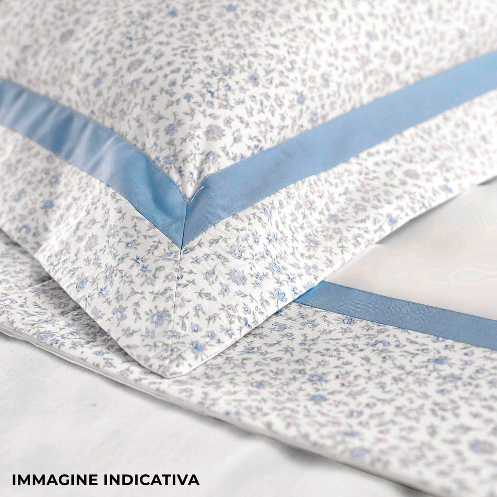 Eko-Bettgarnitur aus reiner Baumwolle mit Volant und bedruckten Kissenbezügen. Lieferumfang: 1 Bettlaken, 1 Spannbettlaken und 2 Kissenbezüge.
