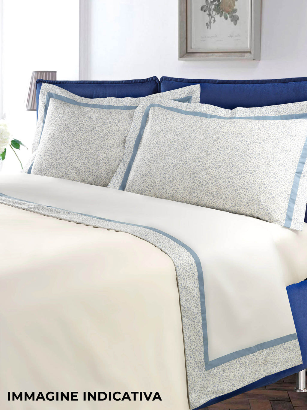 Eko-Bettgarnitur aus reiner Baumwolle mit Volant und bedruckten Kissenbezügen. Lieferumfang: 1 Bettlaken, 1 Spannbettlaken und 2 Kissenbezüge.