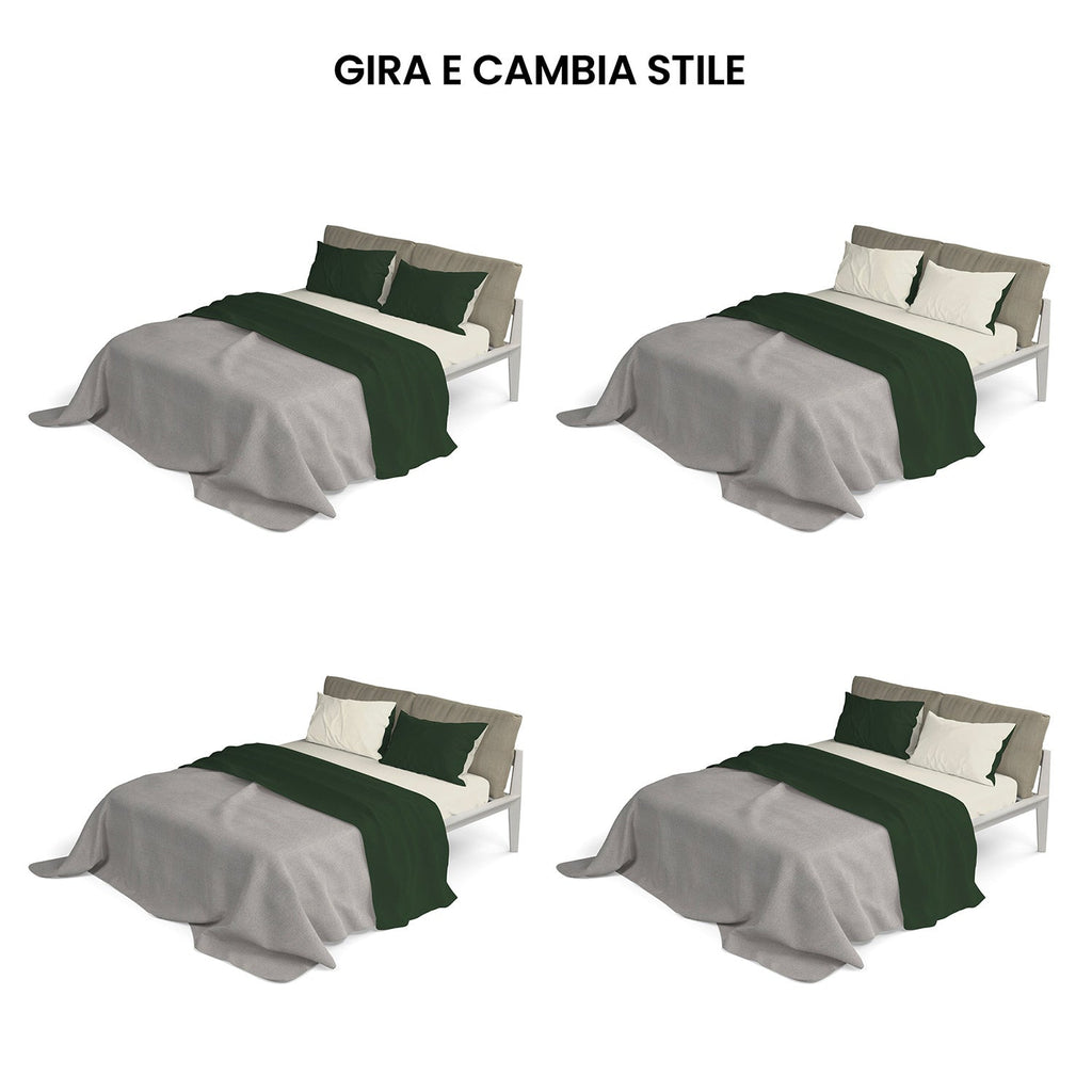 Set Lenzuola Matrimoniale Sopra Sotto e Federe Double Face Verde Oliva/Panna