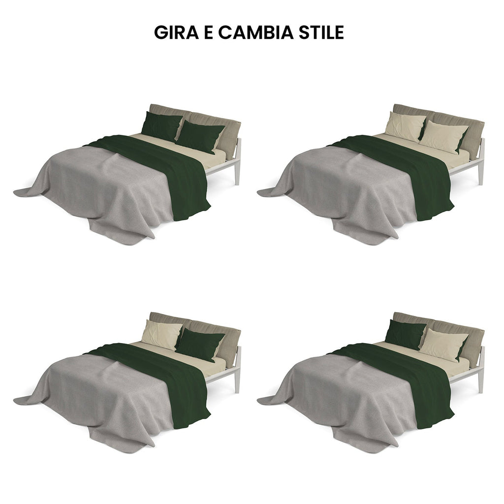 Set Lenzuola Matrimoniale Sopra Sotto e Federe Double Face Verde Oliva/Tortora