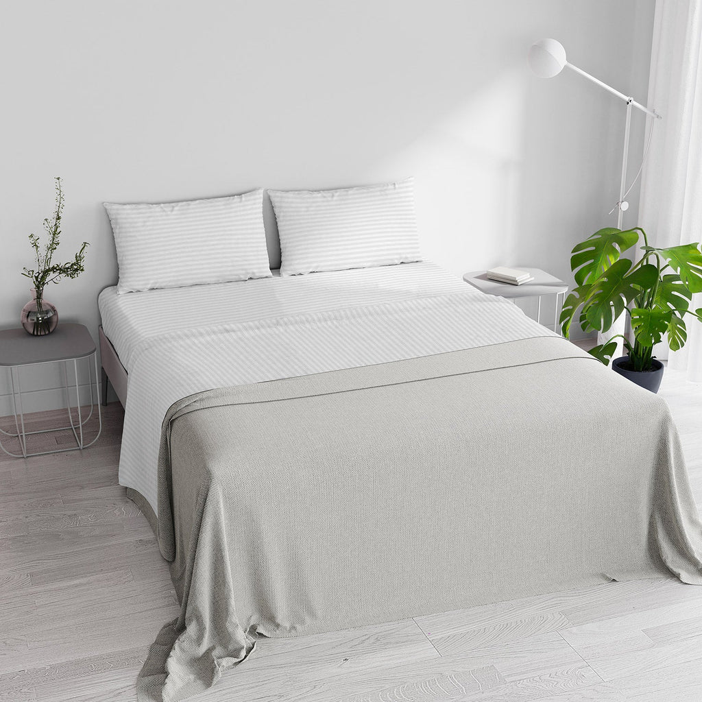 Schmücken Sie Ihr Schlafzimmer mit einem seidigen und schimmernden Set, wählen Sie das Made in Italy Bettset, elegant und raffiniert, es besteht aus gestreiftem Polyestersatin.