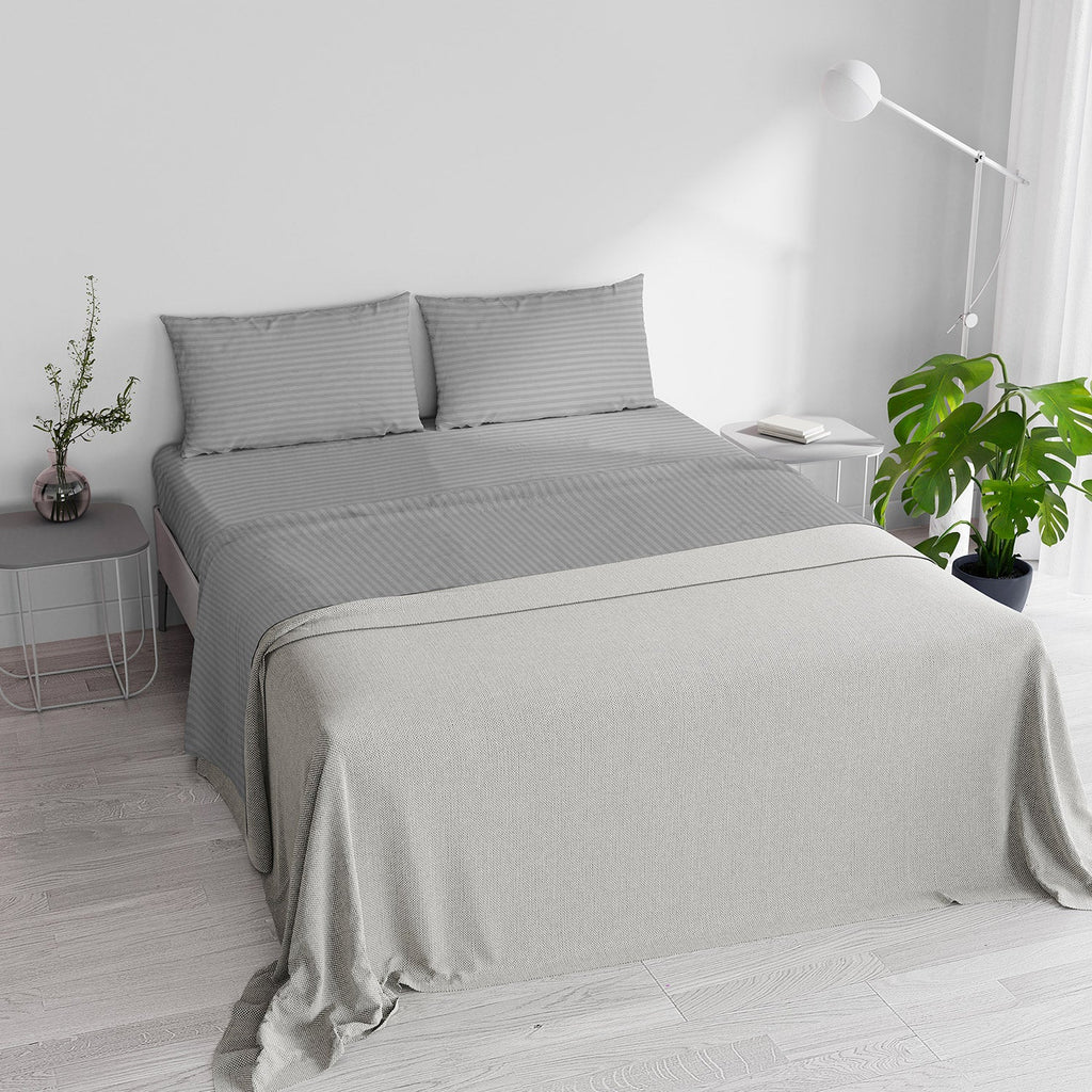 Doppellaken-Set oben und unten und Kissenbezüge aus grauem Polyester-Satin