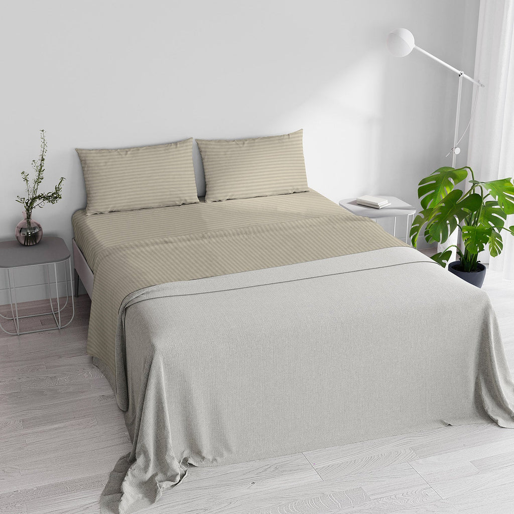 Schmücken Sie Ihr Schlafzimmer mit einem seidigen und schimmernden Set, wählen Sie das Made in Italy Bettset, elegant und raffiniert, es besteht aus gestreiftem Polyestersatin.
