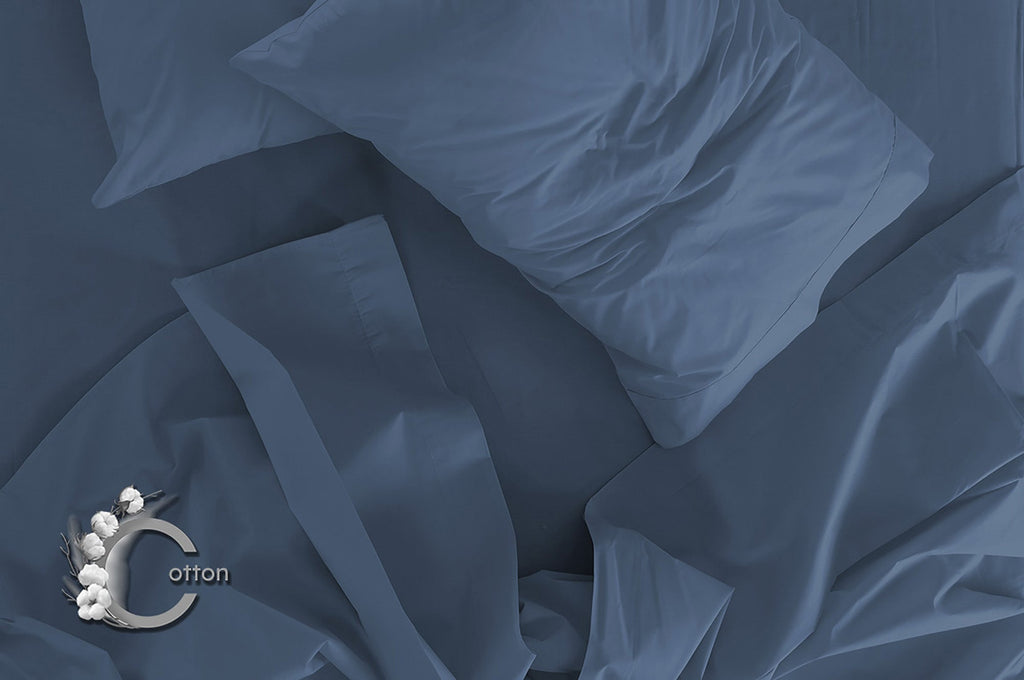 Satz Doppellaken oben und unten und Kissenbezüge einfarbig blau