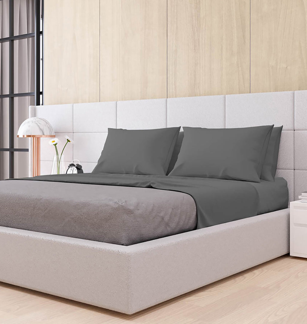 Set aus Doppellaken oben und unten und einfarbigen Kissenbezügen in Rauchgrau