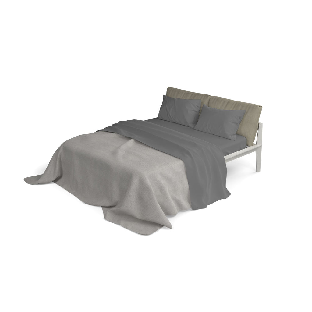 Einfarbiges Bettlaken-Set bestehend aus Oberlaken, Unterlaken und Kissenbezügen. Hergestellt aus feiner Baumwolle, mit besonderem Augenmerk auf die Oberflächen und ein "Finishing" -Verfahren, das den Farben eine besondere Brillanz und eine hohe Waschbeständigkeit verleiht.