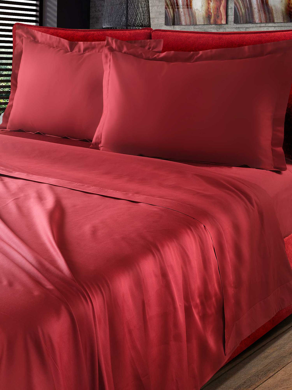 Set aus Doppellaken oben und unten und einfarbigen Garrini Clarice Bordeaux Kissenbezügen