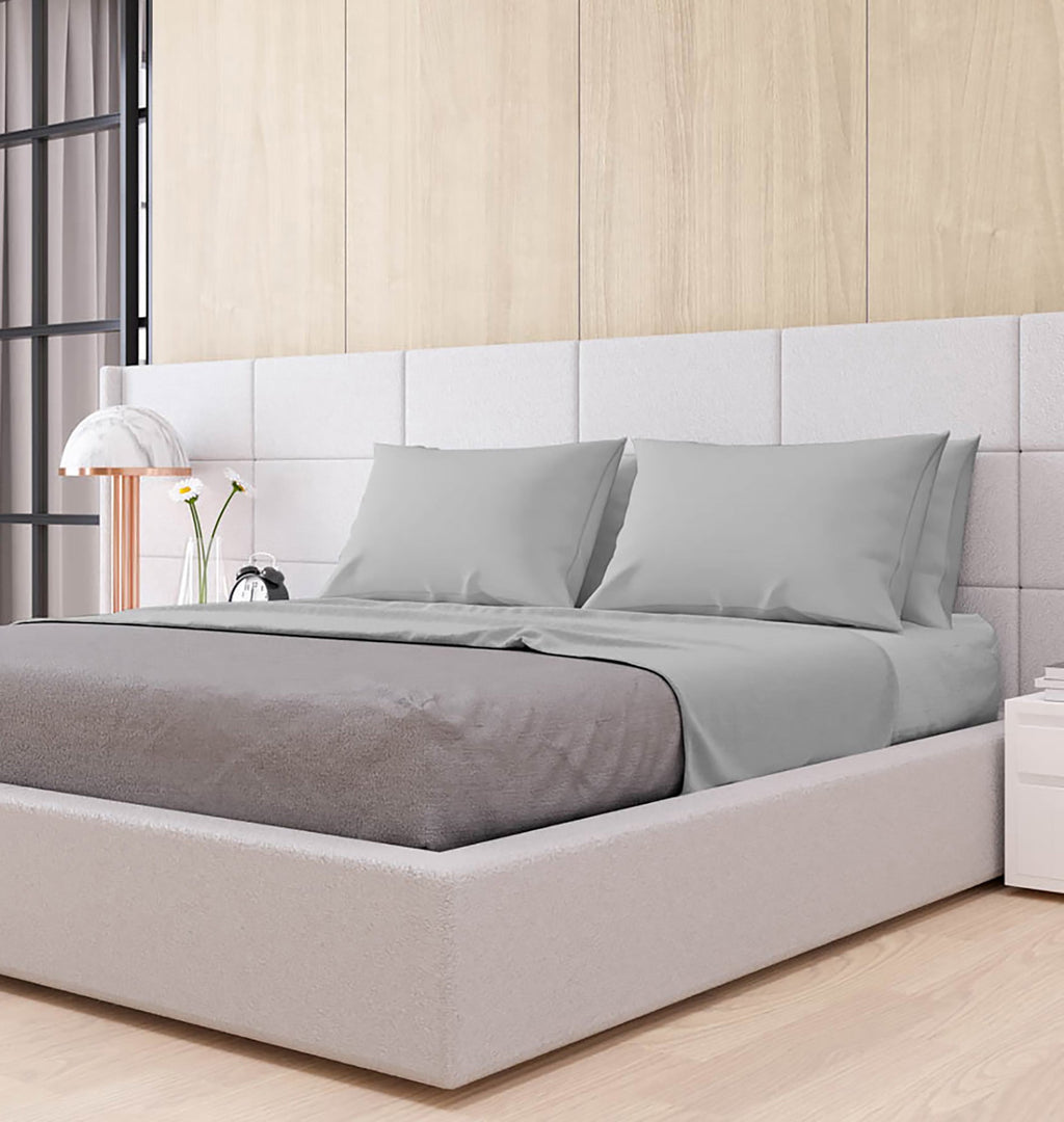 Satz Doppellaken oben und unten und Kissenbezüge einfarbig hellgrau