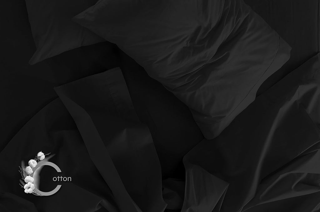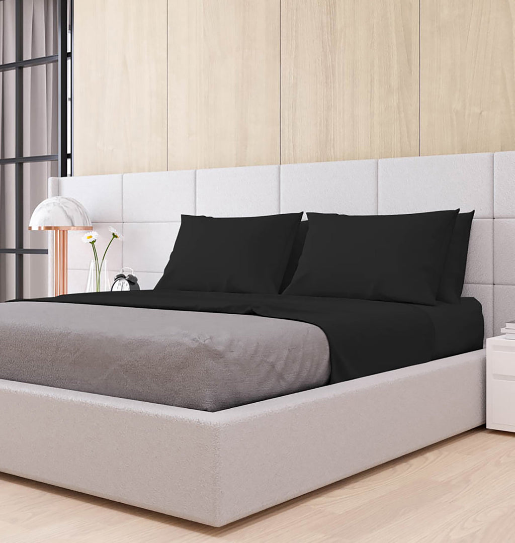 Satz Doppellaken oben und unten und Kissenbezüge einfarbig schwarz