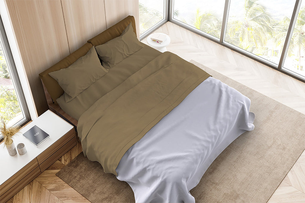 Satz Doppellaken oben und unten und Kissenbezüge einfarbig Haselnuss