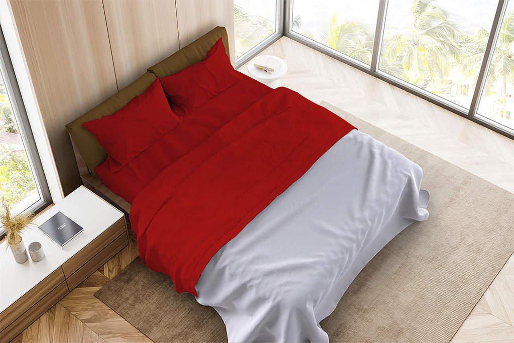 Satz Doppellaken oben und unten und Kissenbezüge einfarbig rot