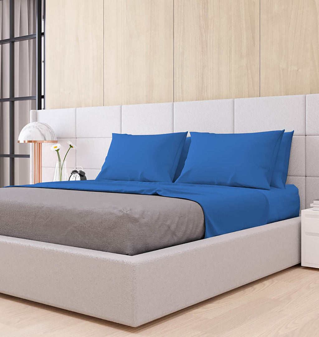 Set aus Doppellaken oben und unten und einfarbigen Kissenbezügen in Königsfarbe