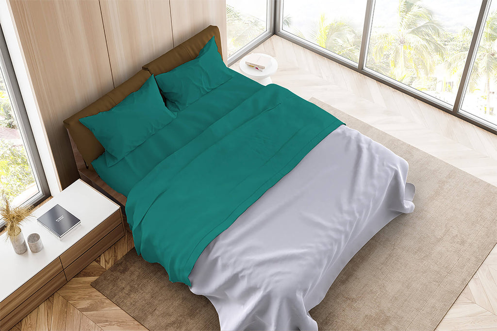 Set aus Doppellaken oben und unten und Kissenbezügen, einfarbiges grünes Wasser