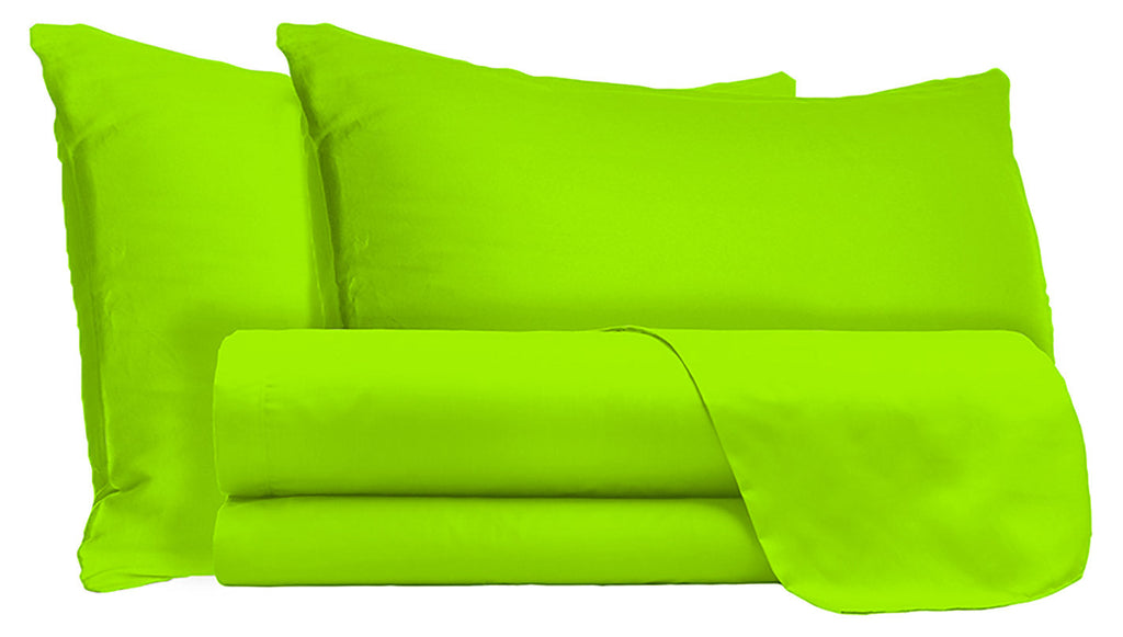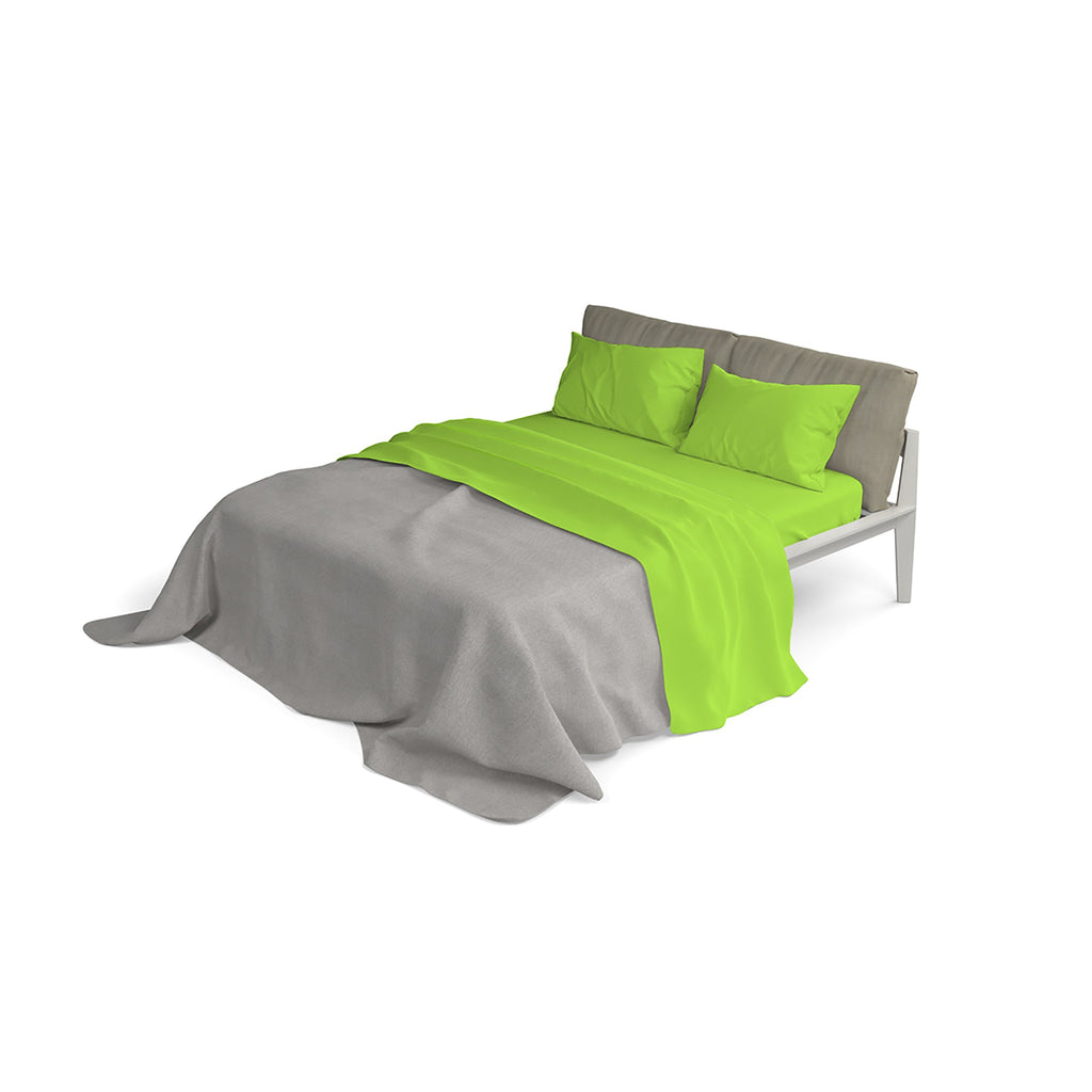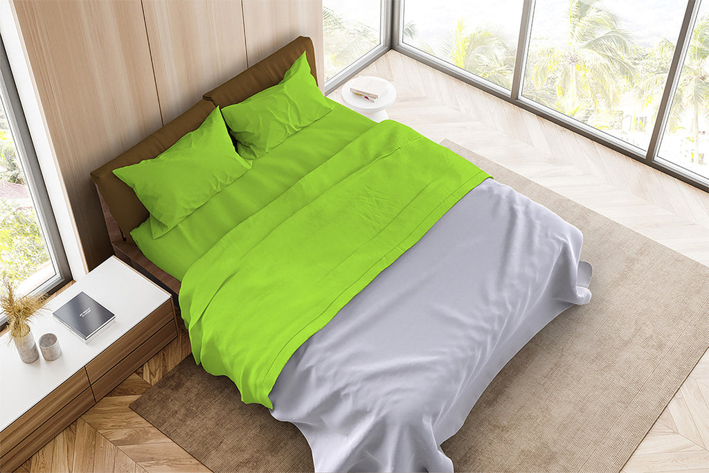 Set aus Doppellaken oben und unten und einfarbigen apfelgrünen Kissenbezügen