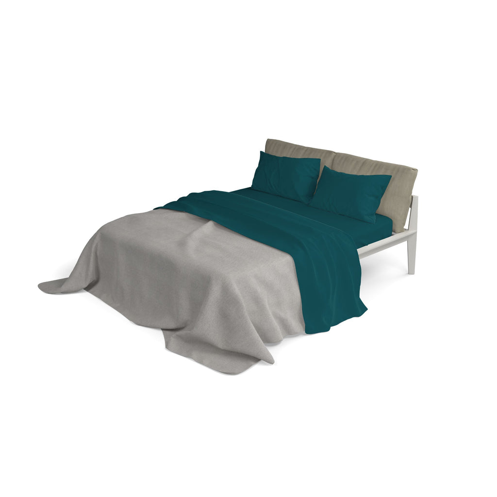 Einfarbiges Bettlaken-Set bestehend aus Oberlaken, Unterlaken und Kissenbezügen. Hergestellt aus feiner Baumwolle, mit besonderem Augenmerk auf die Oberflächen und ein "Finishing" -Verfahren, das den Farben eine besondere Brillanz und eine hohe Waschbeständigkeit verleiht.
