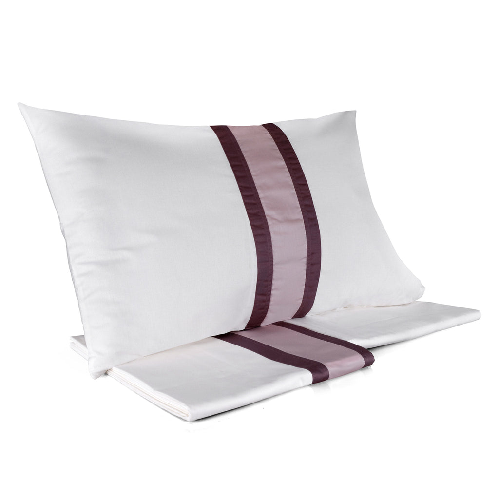 Bettgarnitur aus reiner Baumwolle mit Satinvolant . Das Set besteht aus einem Oberlaken, einem Unterlaken mit Ecken und 2 Kissenbezügen in eleganter Farbe, die den Glanz aus feinster reiner Baumwolle mit doppeltem Satinvolant verstärkt.