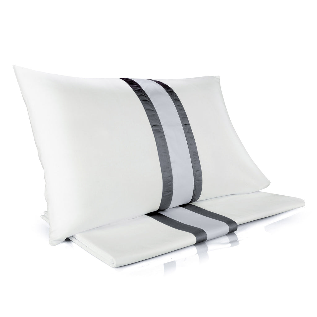 Set aus Bettwäsche und Kissenbezügen aus reiner Baumwolle mit Mitera-Satin-Rüschen Polynesia Oyster und Grisaille