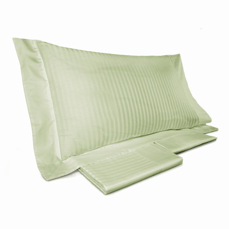 Bettgarnitur aus reinem gestreiftem Baumwollsatin, 300 Fäden . Das Set besteht aus einem Oberlaken, einem Unterlaken mit Ecken und 2 Kissenbezügen mit einer eleganten Farbe, die die Brillanz feinster reiner gestreifter Baumwolle verstärkt.