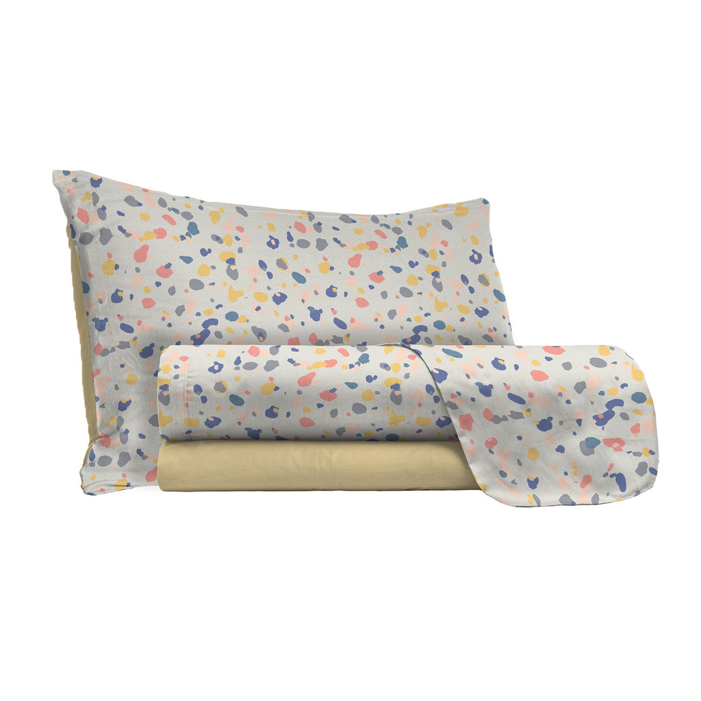 Bettlaken-Set mit Aufdruck oben und unten und Hintergrund-Kissenbezügen in verschiedenen Größen
