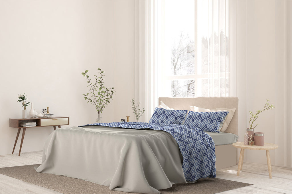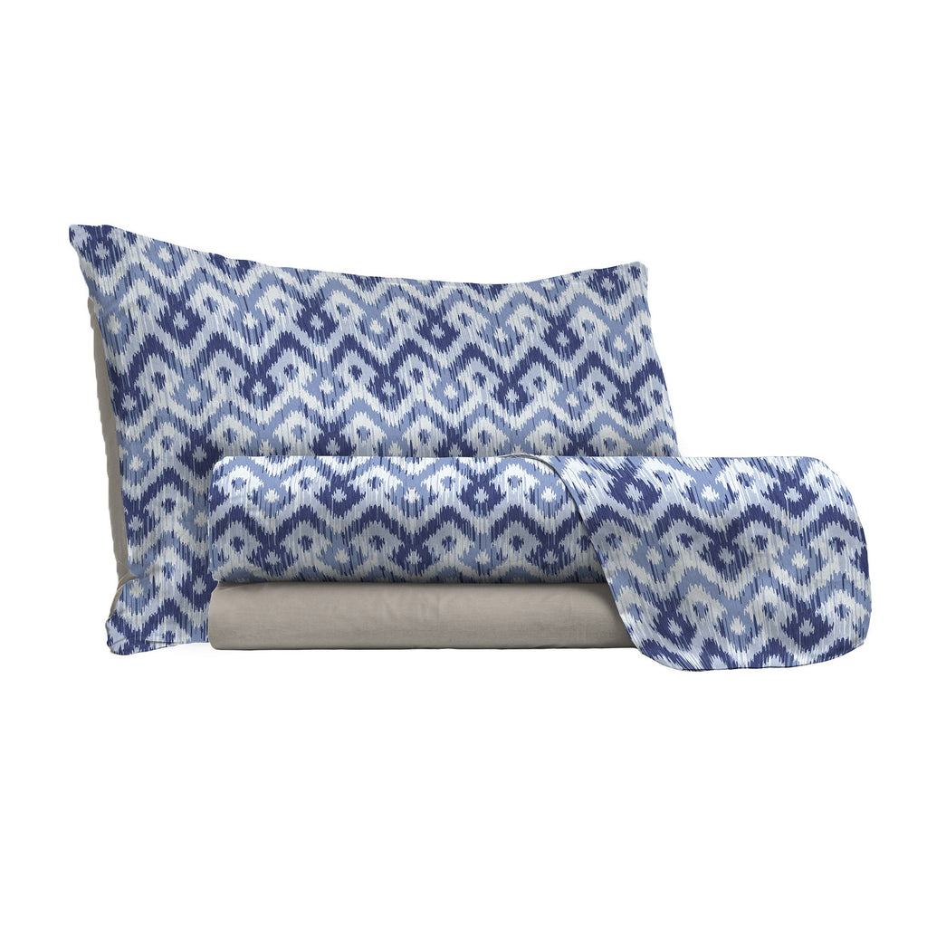 Einzellaken-Set mit Druck oben und unten und Rhombus-Kissenbezügen