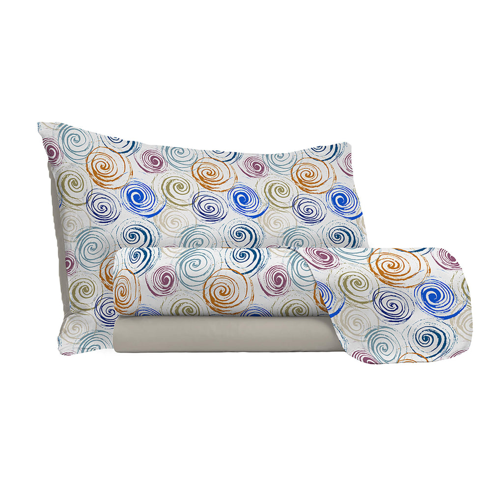 Bettlaken-Set mit Druck oben und unten und Spirlas-Kissenbezügen in verschiedenen Größen