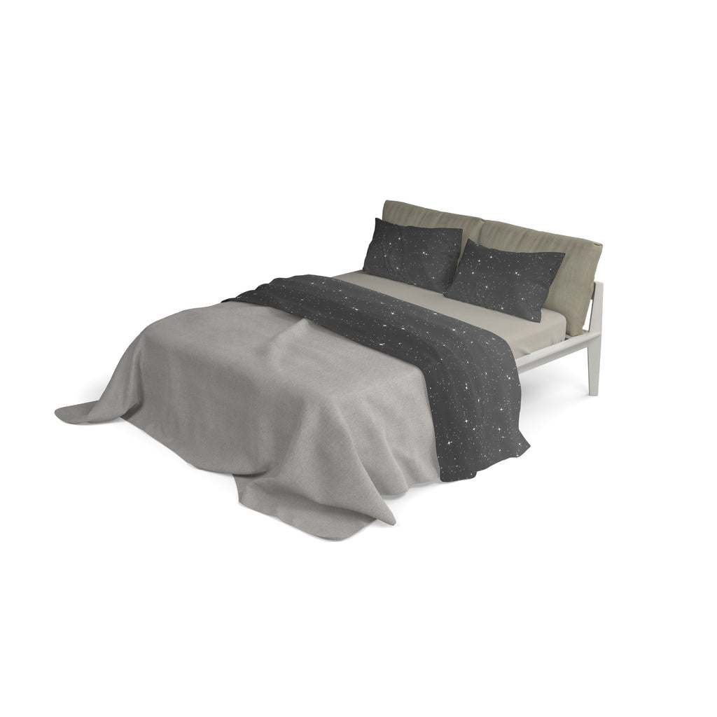 Bettlaken-Set mit Aufdruck oben und unten und grauen Kissenbezügen mit Sternen