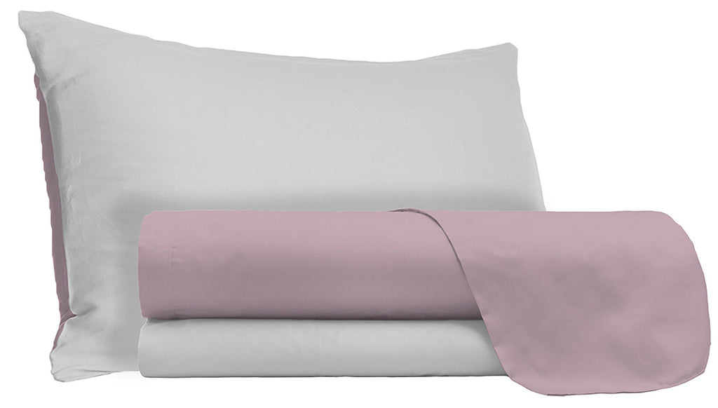 Einzellaken-Set oben und unten und wendbare Kissenbezüge, einfarbig, Antikrosa/Hellgrau