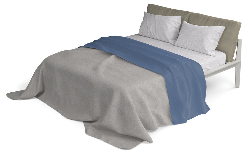 Bettgarnitur mit grauem Unterlaken und Kissenbezügen und farbigem Oberlaken. Hergestellt in Italien Artikel aus 100 % Baumwolle mit Oeko-Tex-Zertifizierung.