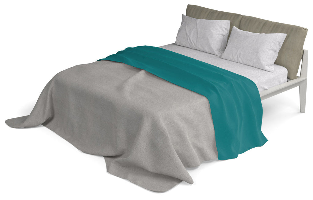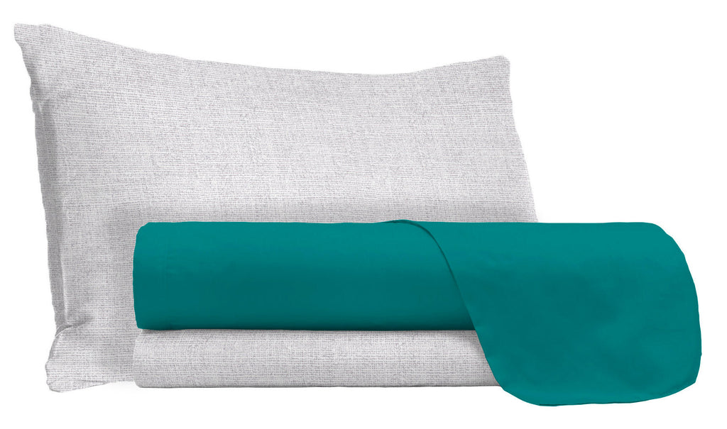 Bettgarnitur mit grauem Unterlaken und Kissenbezügen und farbigem Oberlaken. Hergestellt in Italien Artikel aus 100 % Baumwolle mit Oeko-Tex-Zertifizierung.