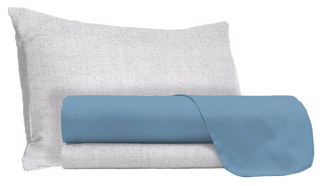Oberlaken-Set und Kissenbezüge aus himmelblauer Baumwolle
