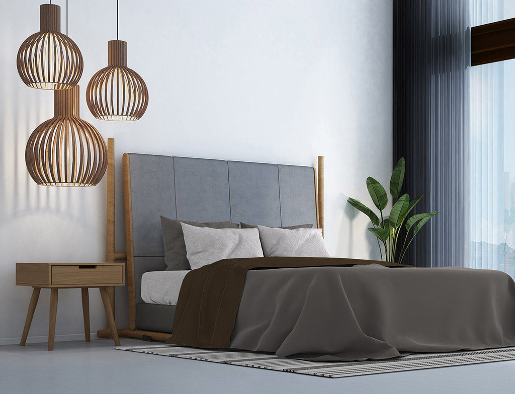 Oberlaken-Set und Kissenbezüge aus schokoladenfarbener Baumwolle