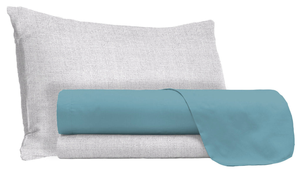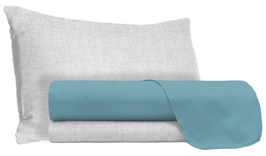 Set aus Oberlaken und Kissenbezügen aus blaugrüner Baumwolle