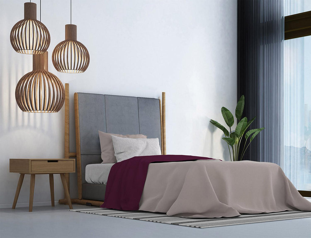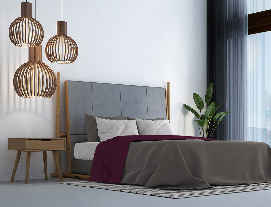 Bettwäsche-Set und Kissenbezüge aus pflaumefarbener Baumwolle