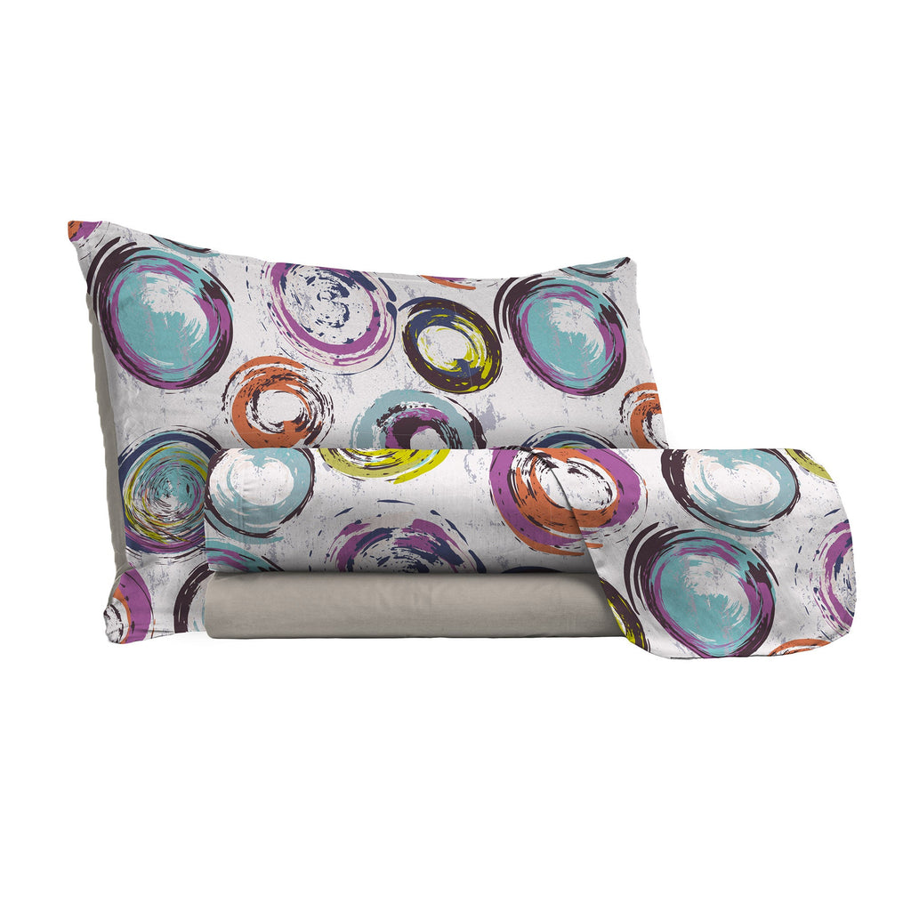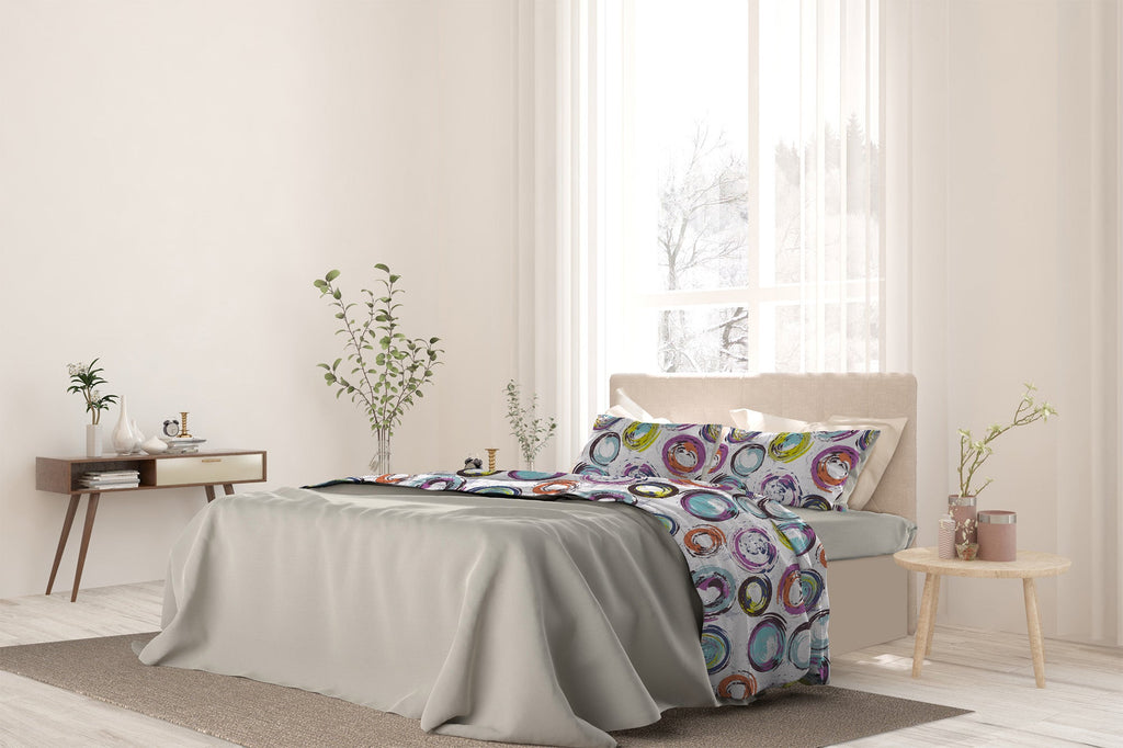 Bettwäsche-Set mit Aufdruck oben und unten und Kissenbezüge Abstrakte Kreise in verschiedenen Größen