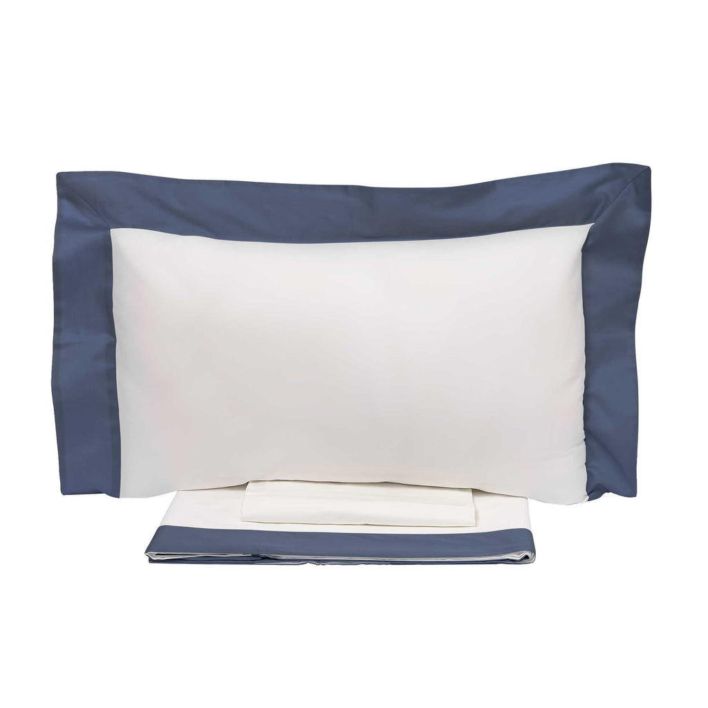 Elfenbeinfarbenes Bettset aus reiner Baumwolle mit 300 tc farbigen Satinvolants. Klassisch und elegant, ist es das Must-have Ihrer Heimtextilien-Kollektion. Beinhaltet ein Oberlaken, ein Spannbettlaken und 1 Kissenbezug mit 3 Rüschen von 5 cm.
