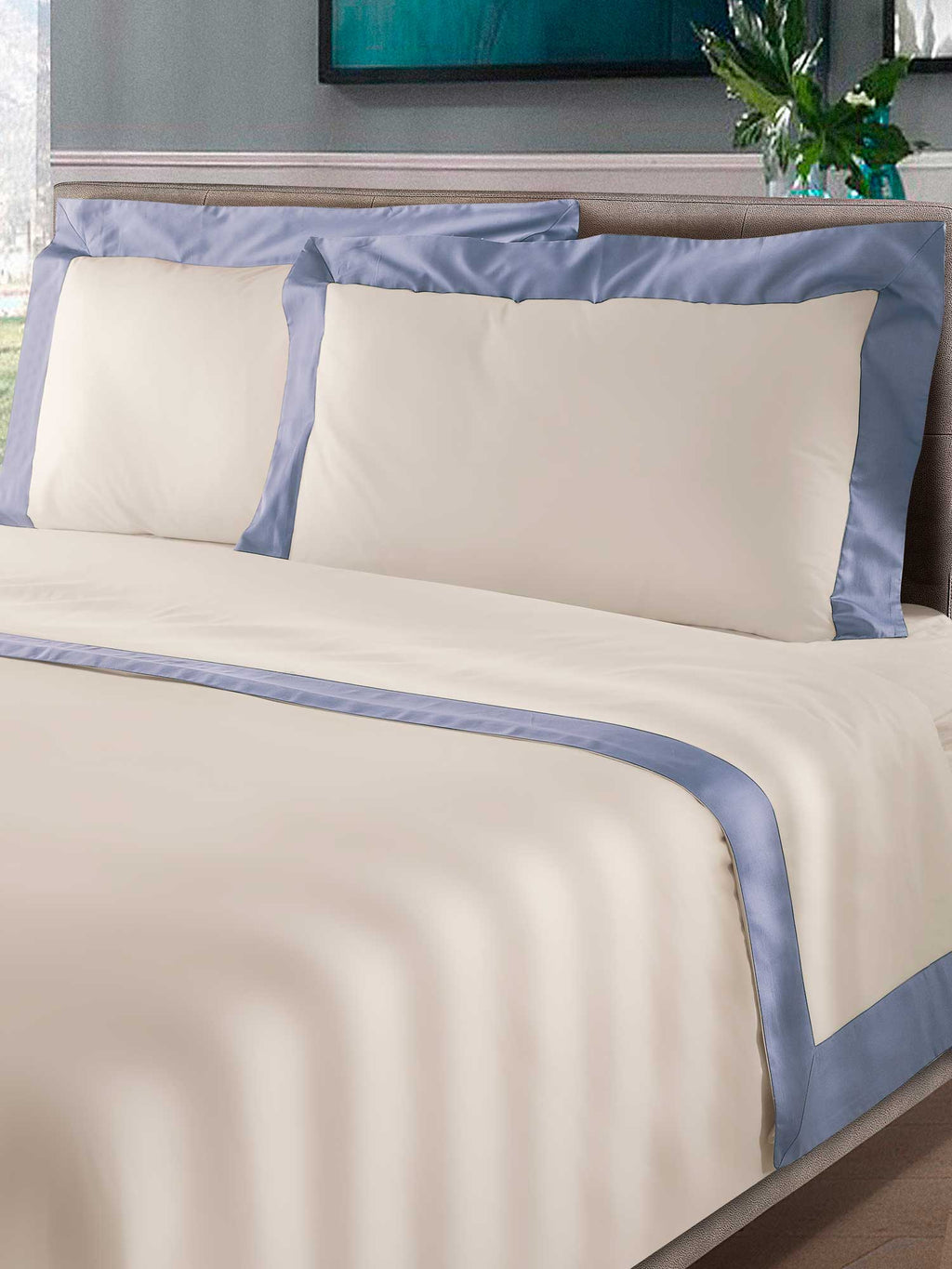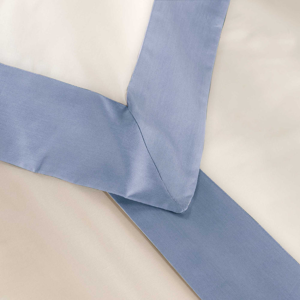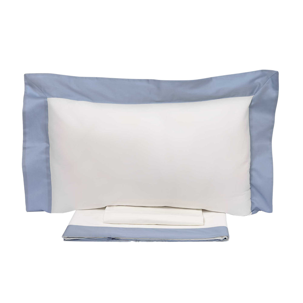 Elfenbeinfarbenes Bettset aus reiner Baumwolle mit 300 tc farbigen Satinvolants. Klassisch und elegant, ist es das Must-have Ihrer Heimtextilien-Kollektion. Beinhaltet ein Oberlaken, ein Spannbettlaken und 1 Kissenbezug mit 3 Rüschen von 5 cm.